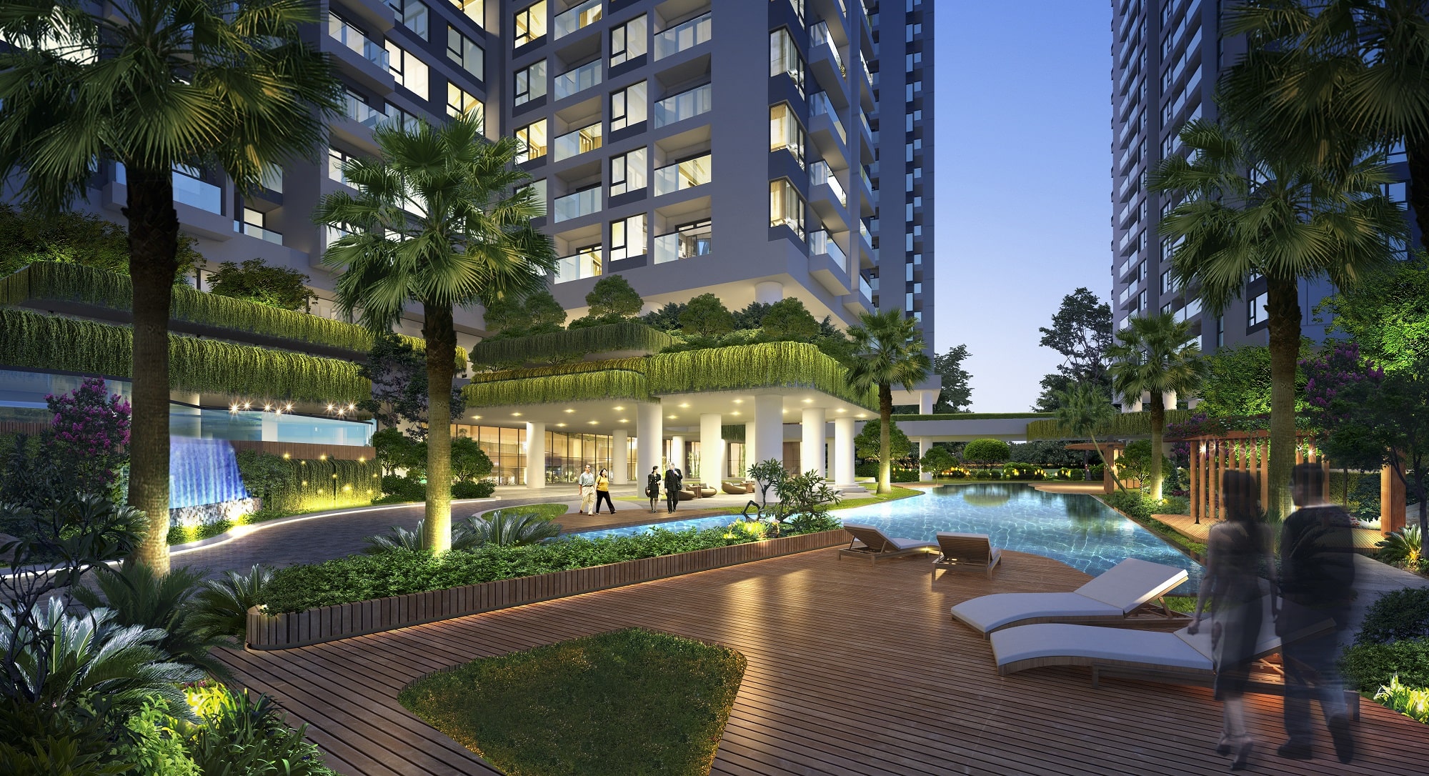 Cây xanh được đặc biệt chú trọng đưa vào thiết kế trên cả mặt đất lẫn trong công trình, các vườn treo bố trí xen kẽ giữa các tầng nhằm tạo ra không gian thư giãn chung cho từng nhóm căn hộ. Đặc điểm và hình thức kiến trúc với đường nét đơn giản, nhẹ nhàng và thanh thoát với kiểu kiến trúc đương đại, màu sắc hài hòa.